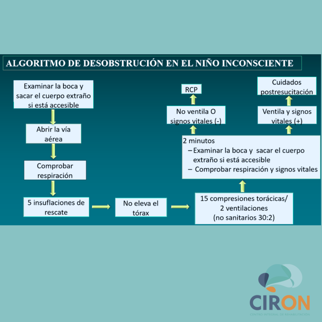 • Con tos ineficaz (inaudible o ausente) deberemos realizar Maniobras de desobstrucción (golpes interescapulares y compresiones en el lactante o maniobra de Heimlinch).